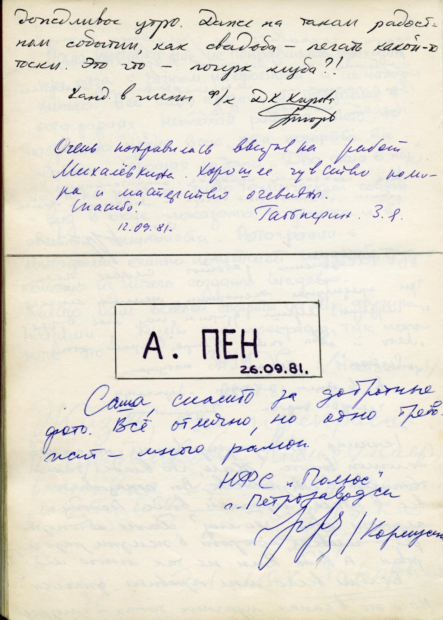 1981 ― «Наш современник». Первая ленинградская выставка художественной фотографии. Ленинград (В составе фотоклуба «Зеркало». Диплом за коллекцию)