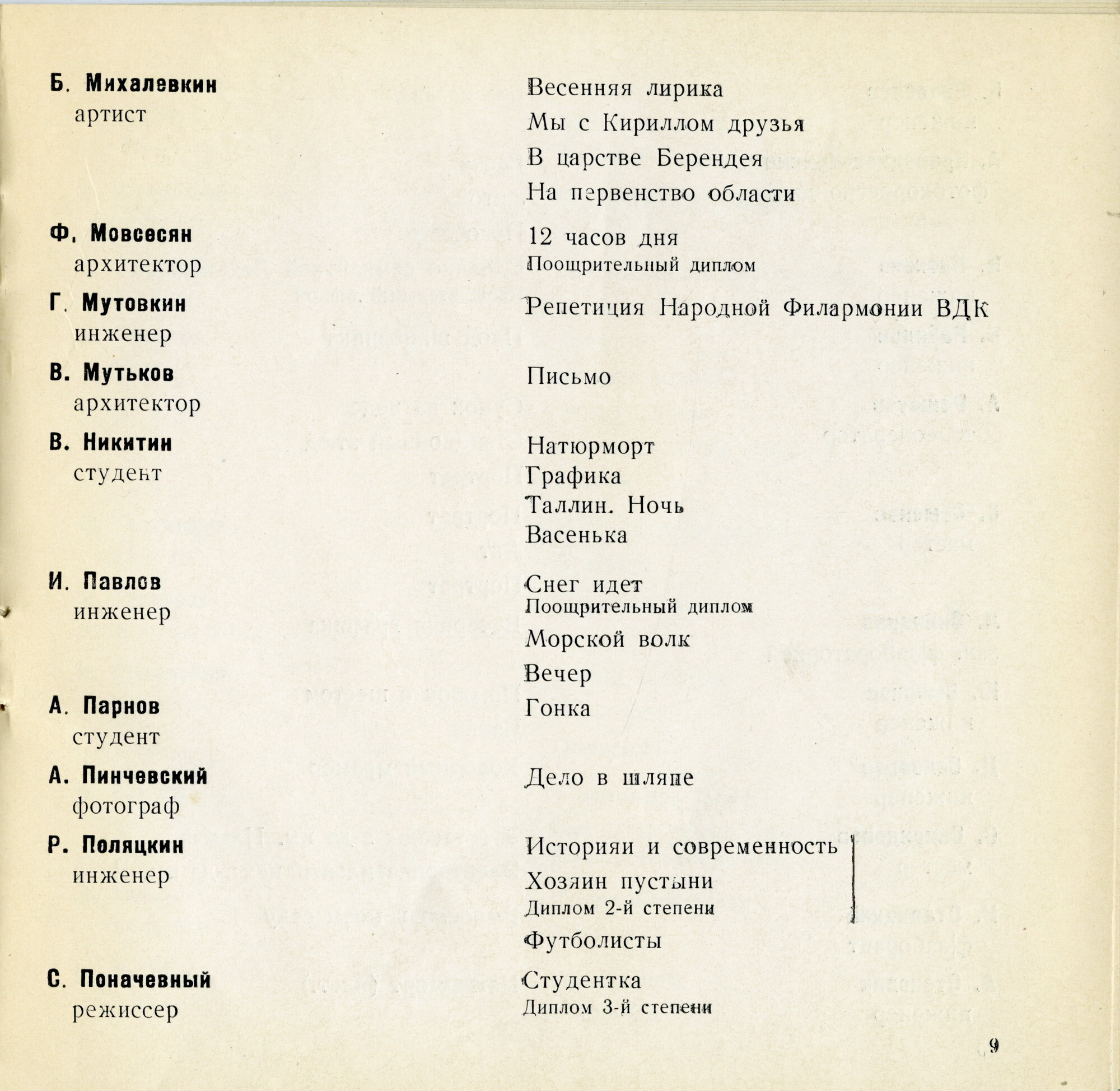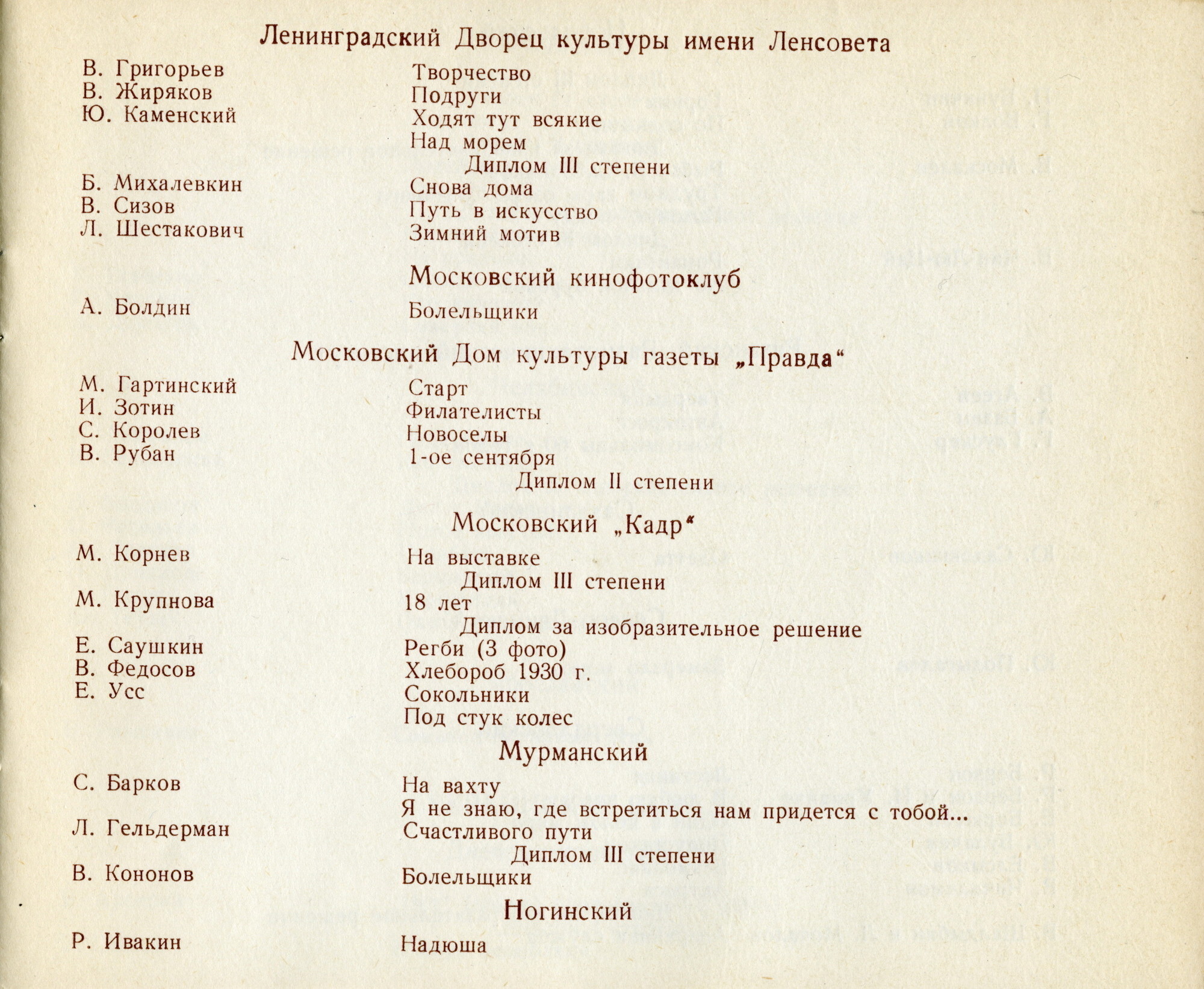 1969 ― Фотоклуб Дворца культуры им. Ленсовета («Весна», «Снова дома», «Неудачный дебют»)