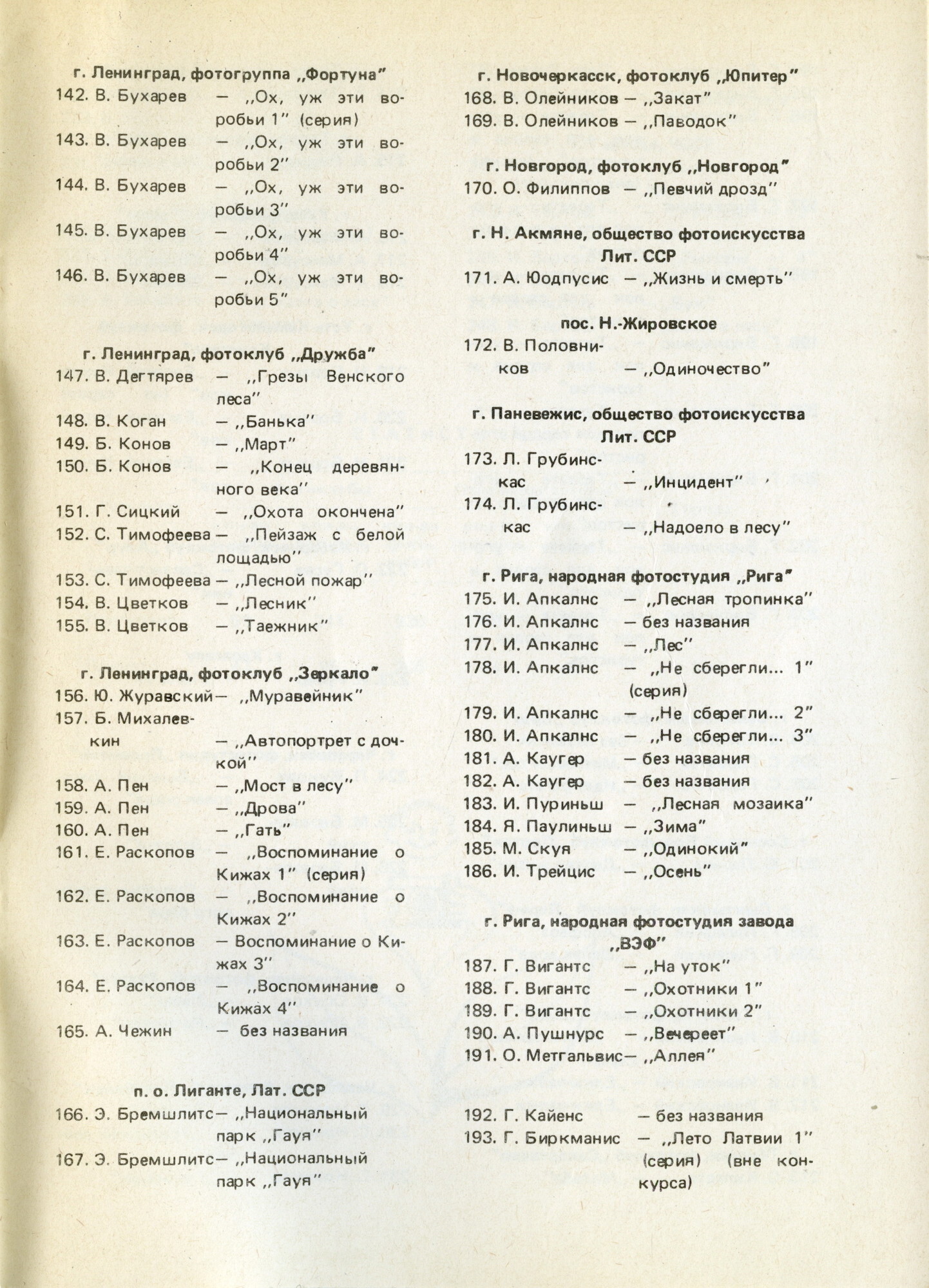 1982 ― «Снимают фотолюбители Ленинграда». Вторая городская выставка любительской фотографии. Ленинград («Август», «х х х»)