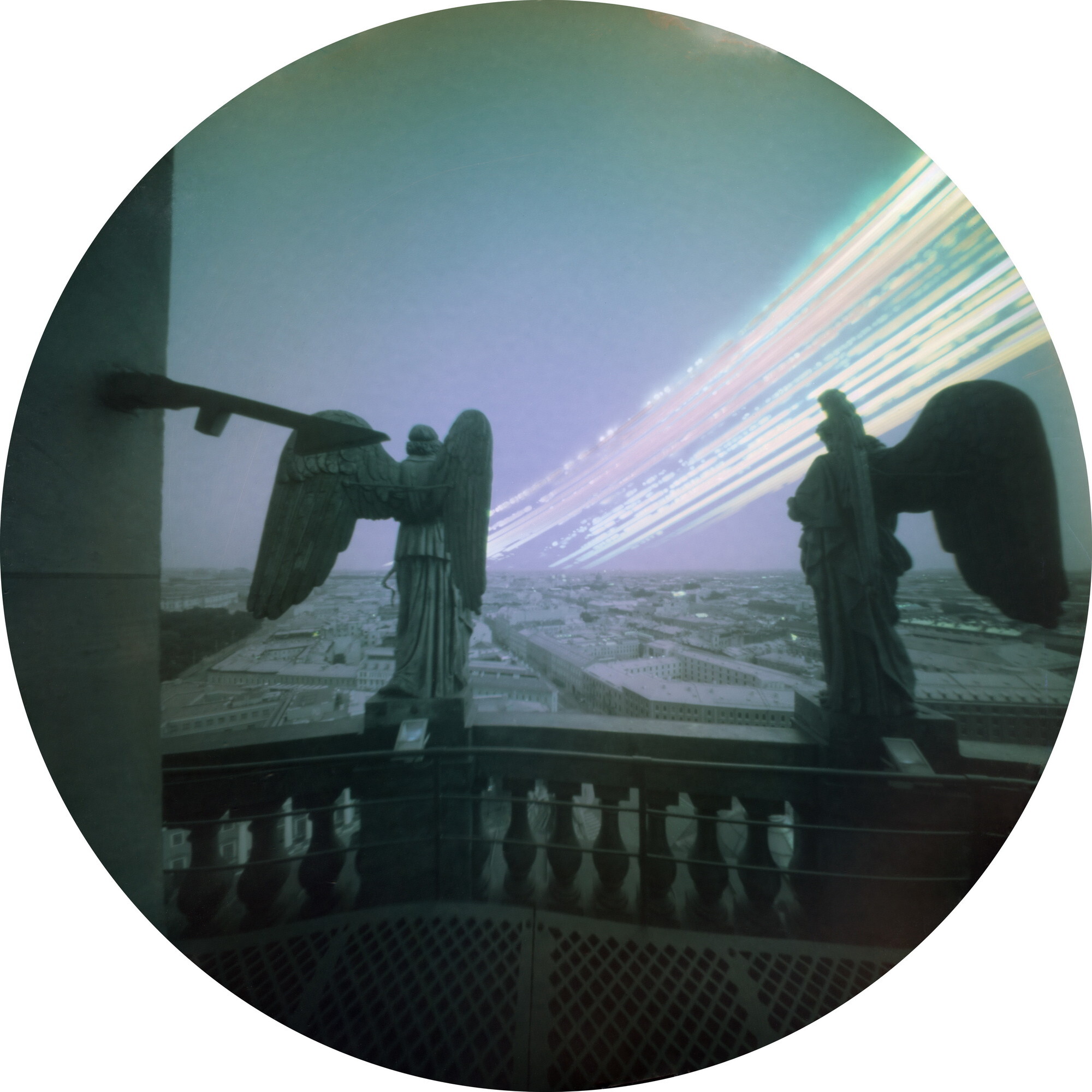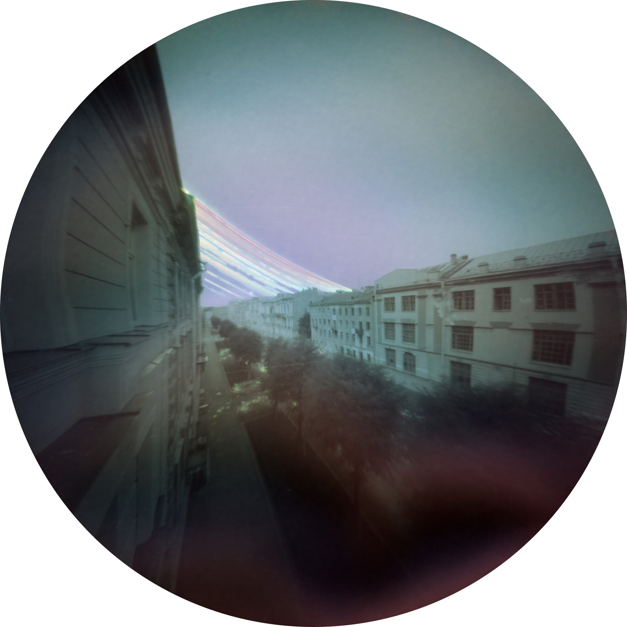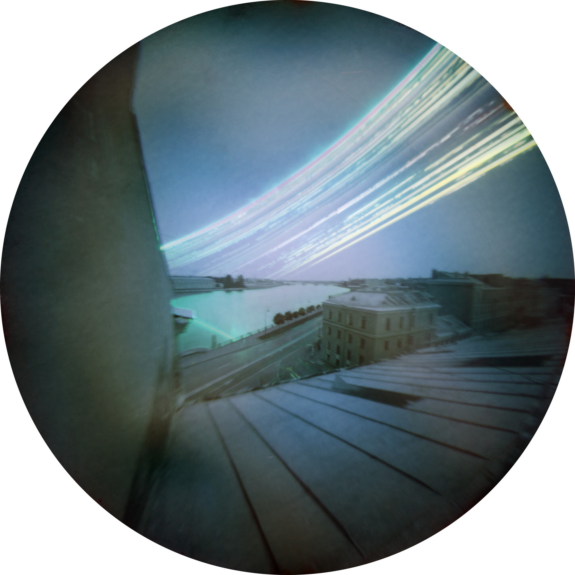 В своем проекте мы отказываемся от времени «мгновенного» в пользу времени «созерцательного». Каждая фотография серии — это снимок города с экспозицией в несколько летних месяцев; над проектом мы работали на протяжении 4 лет. Снимки получены с использованием солярографии — альтернативной технологии, при которой уникальный негатив создается непосредственно в пинхол-камере на черно-белой фотобумаге. Под действием солнечного света происходит восстановление серебра; при этом его кристаллы имеют различный размер, что приводит к возникновению псевдоцветов на фотографии. Проект снимался с помощью одинаковых самодельных пинхол-камер, размещенных в различных частях города.