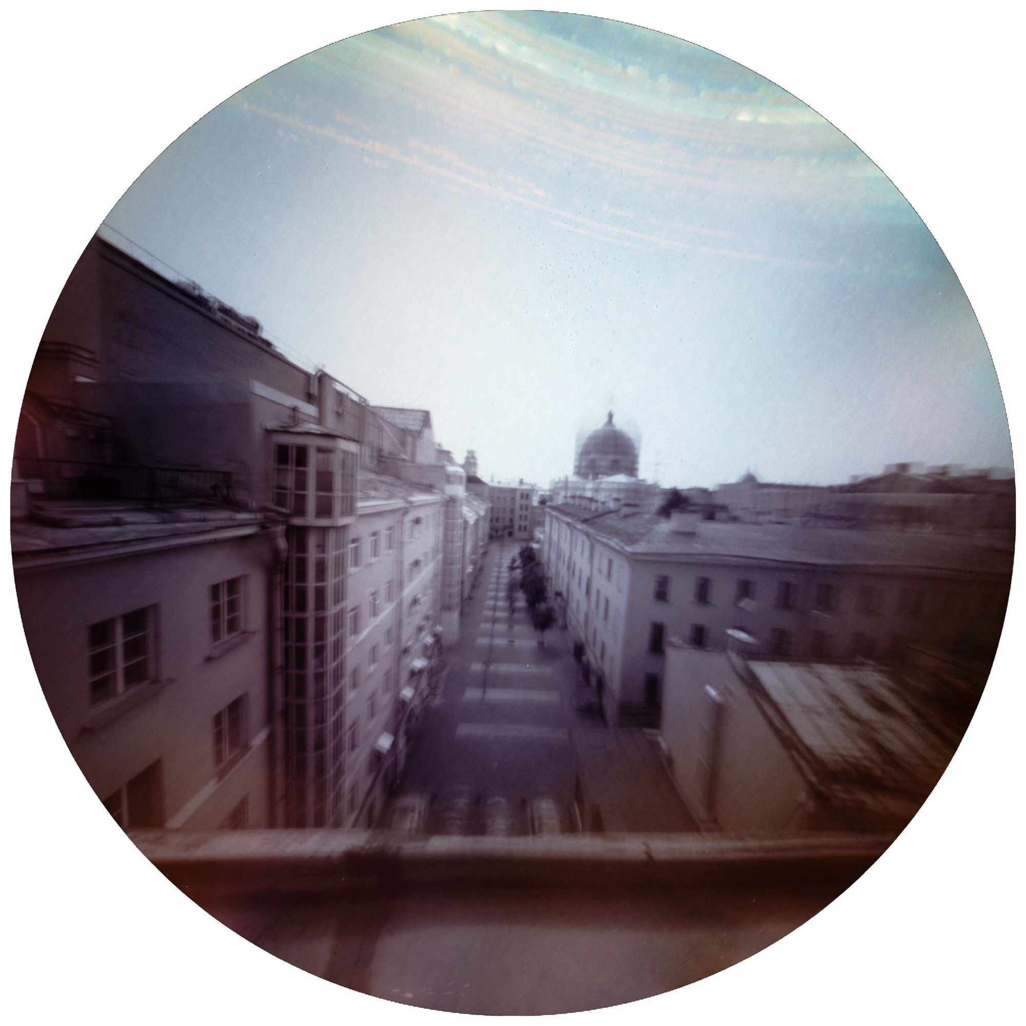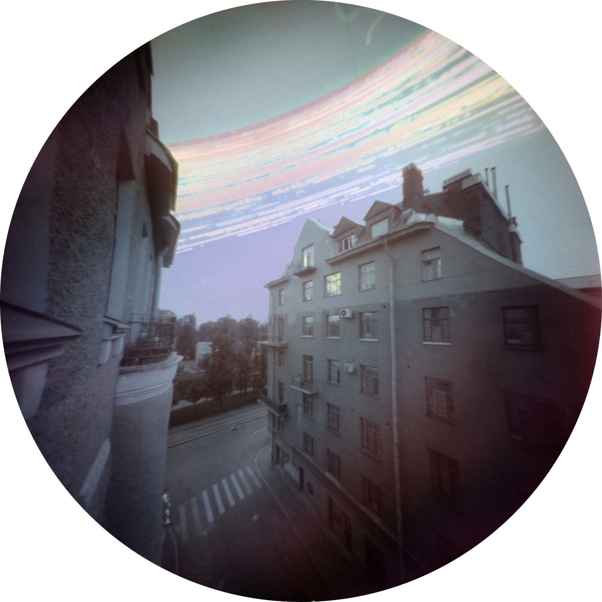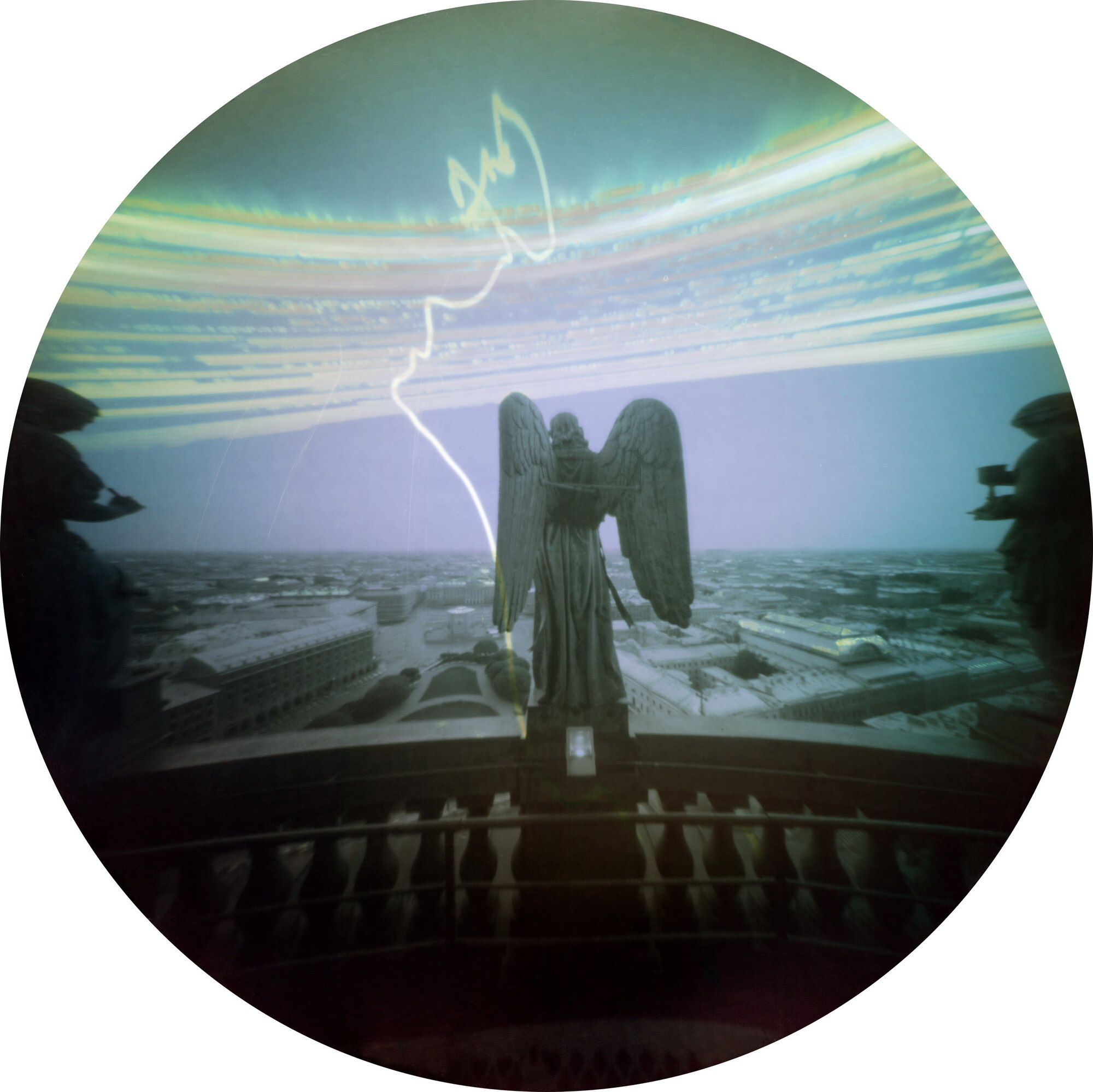 В своем проекте мы отказываемся от времени «мгновенного» в пользу времени «созерцательного». Каждая фотография серии — это снимок города с экспозицией в несколько летних месяцев; над проектом мы работали на протяжении 4 лет. Снимки получены с использованием солярографии — альтернативной технологии, при которой уникальный негатив создается непосредственно в пинхол-камере на черно-белой фотобумаге. Под действием солнечного света происходит восстановление серебра; при этом его кристаллы имеют различный размер, что приводит к возникновению псевдоцветов на фотографии. Проект снимался с помощью одинаковых самодельных пинхол-камер, размещенных в различных частях города.